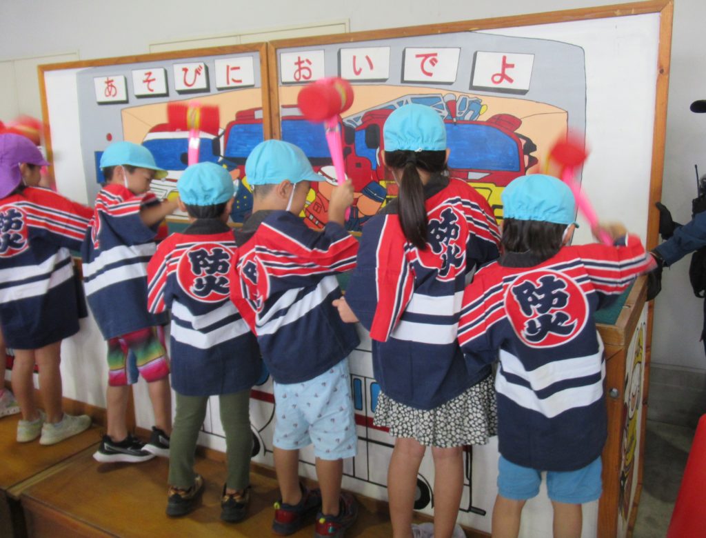 火の用心🔥 2025年度 2025.10.04 諌早消防署で開催された『ちびっこ防火大会』に参加しました! おそろいのはっぴを着て出発~~ 800人くらいのおともだちと一緒に、戦隊ヒーローショーやゲームを通じて 防火について学びました。 ”けむりがモクモクのトンネル通ったよ‼” と教えてくれました。 かっこいい消防車と写真を撮ったり、変面ショーもあったり✨ 子ども達にとって楽しく学べた時間、参加させてもらってよかったなぁと思いました(*^^*)